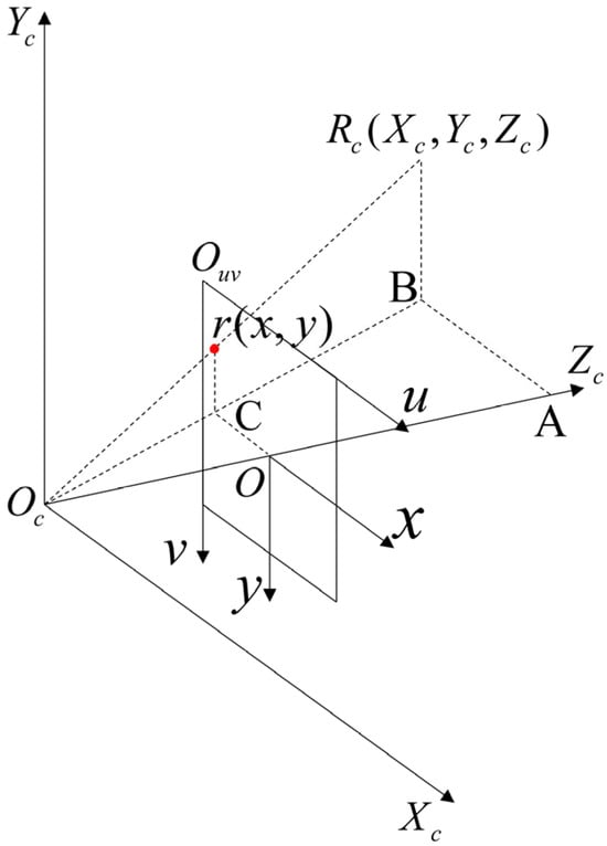 Let the coordinates of the image projection point in the pixel coordinate system be , and let the coordinates of the image projection point in the image coordinate system be , then: