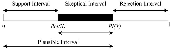 Pl(A) and Bel(A) are defined as the upper and lower bounds of the confidence in proposition {A}. The interval [Bel(A), Pl(A)] represents the degree of uncertainty of the proposition, with the relationship between Bel(A) and Pl(A) illustrated in Figure 1.