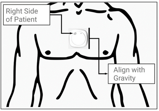 The MetaMotionC© (MMC) inertial measurement unit (IMU) developed by Mbientlab Inc., pictured as it was fitted on the sternal angle of patients. Figure adapted from Natarajan et al. (2022) [9].