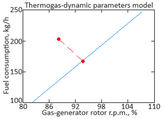 In addition to the traditional linking method, formal identification methods are widely used [7,8]. These enable one to directly find the parameter values or relative corrections to the original parameters, depending on the stated aim function. When identifying the gas-turbine engines’ (including helicopter TE) mathematical model, formal methods solve two tasks: a direct one and an optimization task [9]. The direct task determines the parameters (residuals, influence coefficients, etc.) of the calculated operating modes, which are then used in the optimization task to find the parameter values or corrections to the initial parameters in order to minimize the objective function.