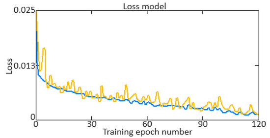 For the Elman network, only the number of hidden layer neurons was varied, being 1…20, using the gradient descent algorithm with the training rate parameter perturbation and adaptation. The lowest MSE value of 41.83 was obtained for a single-layer network with two hidden layer neurons and double feedback delay. Increasing the number of hidden layers or delays led to a loss in the model sensitivity to changes in the input signals. Therefore, the best results were obtained on a single-layer network with a hidden layer and double feedback delay signal. The research results indicate that the model based on the Elman network was more stable compared to the NARX network and generally reflected the peculiarities of the dynamics of the helicopter TE parameters. Therefore, according to [75], the use of an Elman network with a hidden layer feedback signal double delay was proposed to simulate the dynamics of the helicopter TE parameters.