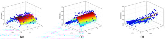 Figure 10 depicts the fitting effect of the three Bluetooth AP fingerprint databases. It covers the majority of the fingerprint database data, with an average fitting error of 6.81 dBm. This provides a solid foundation for subsequent particle filtering and multi-frame joint matching.