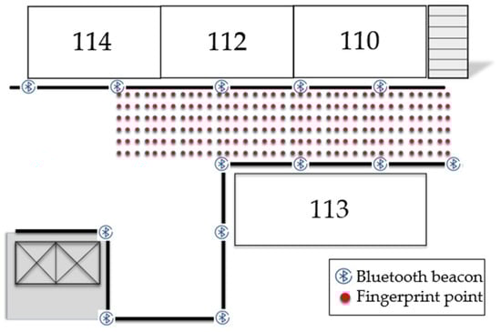 - Layout selection of Bluetooth beacons []. Fewer beacons may prevent the device from receiving the Bluetooth signal, thus preventing it from localization, and more new tables will cause interference with each other and reduce accuracy.