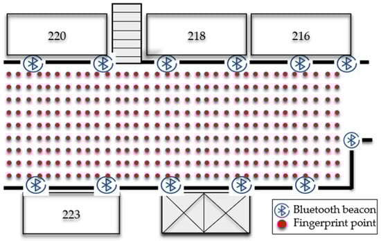 - Martins, P.; Abbasi, M.; Sá, F.; Cecílio, J.; Morgado, F.; Caldeira, F. Improving bluetooth beacon-based indoor location and fingerprinting. J. Ambient. Intell. Humaniz. Comput. 2020, 11, 3907–3919. [Google Scholar] [CrossRef]