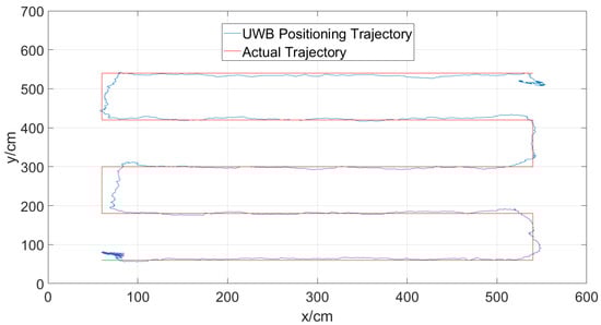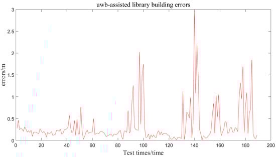 The impact of UWB-assisted database construction on Bluetooth positioning accuracy is illustrated in Figure 17 and Figure 18. As shown, UWB positioning demonstrates high accuracy, with an average error within 10 cm. The obtained trajectory closely aligns with the actual trajectory.