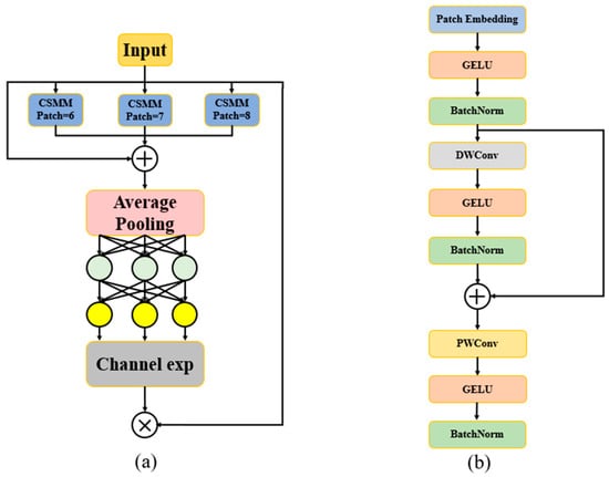 As shown in Figure 5, the SEAM module begins with the input layer, which receives feature inputs from the previous layer of the network. These features are then fed into the CSMM module for enhancement and processing. The CSMM module processes the feature map through a series of operations, including Patch Embedding, GELU activation function, Depthwise Convolution, and Pointwise Convolution, to enhance the feature representation capability of the image. Different CSMM modules extract features at various scales based on different patch sizes. This design allows the SEAM module to capture multi-scale features of the image effectively. The multi-scale features extracted from different CSMM modules are weighted and aggregated, enriching the feature representation of the image. The aggregated features are then subjected to average pooling to further reduce the feature dimensions. The pooled features are input into a two-layer fully connected network to learn the weight relationships between channels. Subsequently, channel expansion is performed to enable the model to better differentiate the importance of different channels and to further amplify the response to occluded areas. Finally, the result of channel expansion is used as attention weights and multiplied with the original feature map to obtain the final output feature map. This process enhances the focus on occluded regions and reduces the influence of background areas.