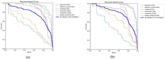 P–R curve of different kinds of defects. (a) YOLOv8n and (b) YOLO–SDS.