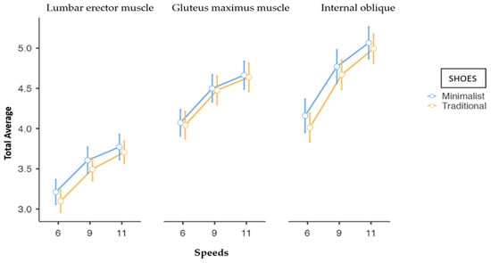 Effects of Minimalist vs. Traditional Running Shoes on Abdominal Lumbopelvic Muscle Activity in Women Running at Different Speeds: A Randomized Cross-Over Clinical Trial