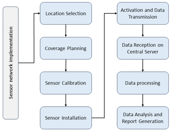 Operational flow for the implementation of the environmental monitoring sensor network.