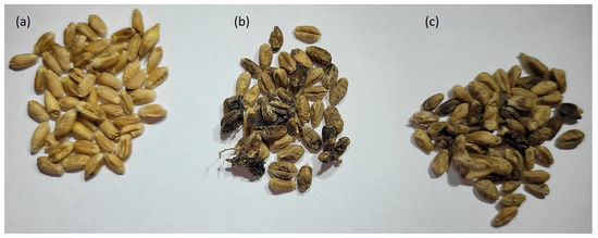 Examples of grain infected by Fusarium fungi are presented in Figure 1.