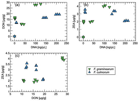 - Nicolaisen, M.; Supronienė, S.; Nielsen, L.K.; Lazzaro, I.; Spliid, N.H.; Justesen, A.F. Real-time PCR for quantification of eleven individual Fusarium species in cereals. J. Microbiol. Methods 2009, 76, 234–240. [Google Scholar] [CrossRef] [PubMed]