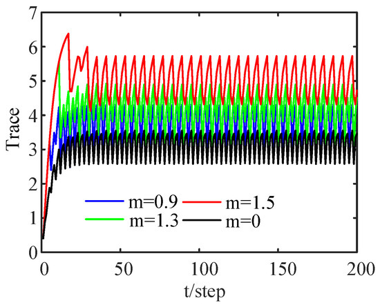Figure 5 shows the relationships among the traces of EECMs under different thresholds. As the threshold increases, the trace becomes larger. That is, with the increase in the threshold, the estimation accuracy is reduced. From Figure 5, it can also be seen that the fusion EECMs are periodically stable.