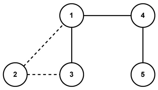 Undirected network topology of the MASs with five agents where 2nd agent is disconnected at 3 s.