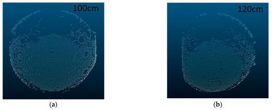 Effect of larger measurement distances on imaging. (a) Measuring imaging at a distance of 100 cm. (b) Measuring imaging at a distance of 120 cm.