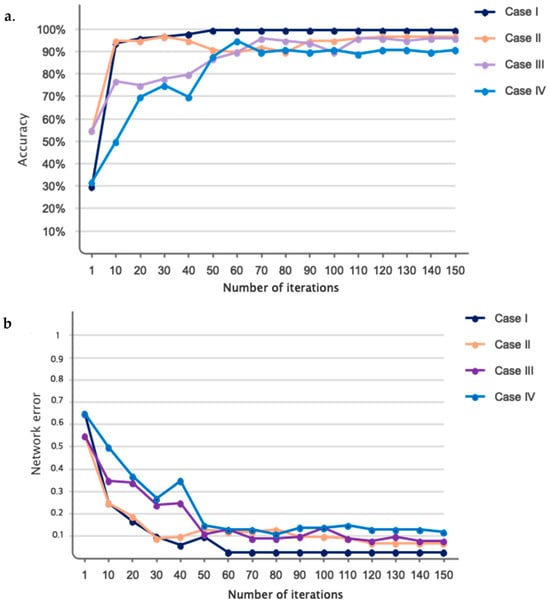 Figure 9b shows the error of the proposed model for all considered cases. According to this figure, as seen by increasing the number of GCN model iterations, the number of errors has decreased, so for case I, the error increased from 0.65 to 0.01.