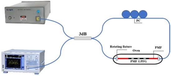 The experimental setup for PM-LPFG temperature and the twist-sensing system.