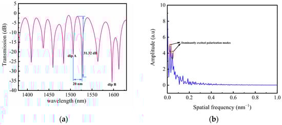 (a) Transmission spectra SI-based PM-LPFG1; (b) The FFT of the interference spectrum for SI-based PM-LPFG1.