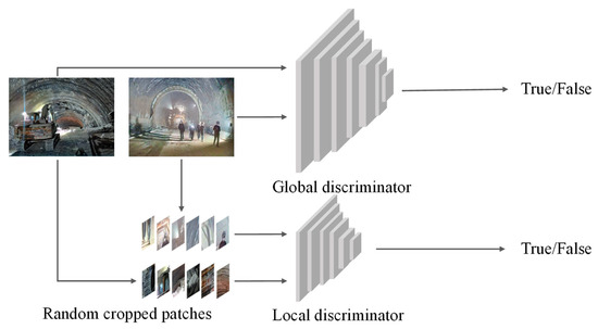 This dual discriminator design allows for a more comprehensive evaluation of the generated images by considering both global and local factors. This design contributes to the improvement of image quality, ensuring that the generated images can compete with real images in various aspects. Figure 2 illustrates the discriminator network structure of the model.