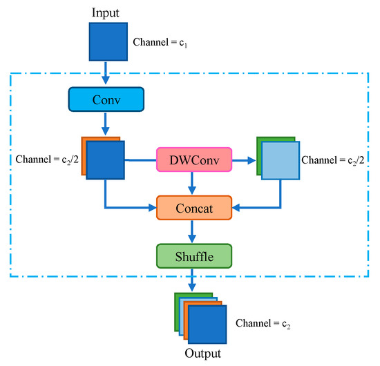 Although the backbone network has been replaced with Shufflenet v2, there are still a large number of convolutional layer convolution operations which consume more resources. To better capture both local and global information in the tunnel construction environment and strike a balance between accuracy and inference time, we made modifications to the model’s neck network to further enhance detection performance. Li et al. [36] proposed a new convolution method called GSConv, as they found that networks constructed with depth-wise separable convolutions have poor accuracy.