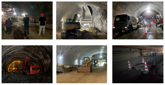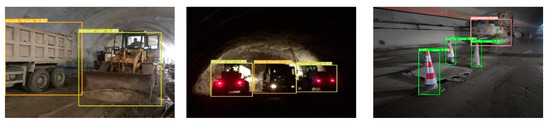 Due to the difficulty in collecting images in tunnel construction scenarios, this paper allocated as many images as possible to the training set to assist the model in better learning target features. The dataset was ultimately randomly divided into training, validation, and test sets in a ratio of 8:1:1. The training set was used to train the model parameters, the validation set was used to assess the model’s generalization ability, and the test set was used to evaluate the final model’s accuracy. This partitioning allowed for effective training, validation, and evaluation of the model, ensuring both its generalization ability and accuracy. Figure 16 shows representative images from different categories in the dataset.