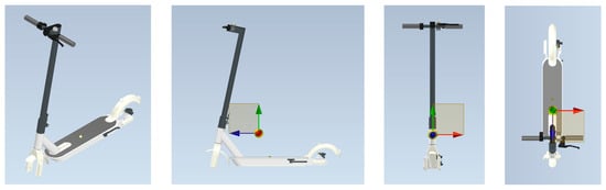 However, it was not until the invention of the first lithium batteries in 1991 when the first e-scooters began to be manufactured, with less autonomy than their predecessors, but with less environmental impact [4]. The access of this vehicle to everyone began with the operation of electric scooter rental companies around the world. Thus, for example, one of the pioneer companies, Lime, began operating in 2017 [5] in 16 countries in America, Asia, Europe and Oceania. The importance of the e-scooter in different parts of the world was growing [6,7,8,9,10] until in 2019 sales multiplied by 10 from the previous year and, as a forecast for the future, sales of this mobility vehicle will continue to increase worldwide [11]. This shows the importance of analysing and optimizing its interaction with the user. The scooter has gone from a small child’s toy to a vehicle that has solved the problem of the last mile and small trips. In many countries, regulations began to be developed after their operation was launched. Most of the published papers related to the e-scooter topic are related to usage patterns of shared e-scooters [12,13,14,15,16] or the analysis of injuries [17,18,19,20], but the literature related to mechanical and dynamical analysis is still scarce.