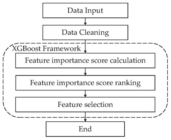Some data samples in the actual data set have duplicate or missing problems, so these useless data need to be removed from the data set. XGBoost [16] integrates the prediction results of many single-tree models to improve its performance and then evaluates the importance of the feature parameters according to the splitting times of feature attributes in each tree, making the feature selection results more reasonable. Therefore, we choose XGBoost to address the optimal combination of feature parameters. As shown in Figure 3, by constructing multiple decision tree models, we obtain corresponding importance scores for each feature parameter and subsequently rank all feature parameters in descending order. Ultimately, different numbers of feature combinations are selected based on the ranking results to achieve the optimal feature combination selection for the data set.