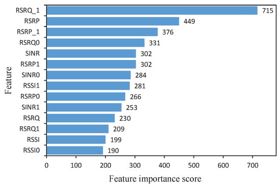 In this paper, the importance score of each feature is obtained through the feature importance ranking function of XGBoost, with which descending ranking is performed. The experimental results are shown in Figure 6.
