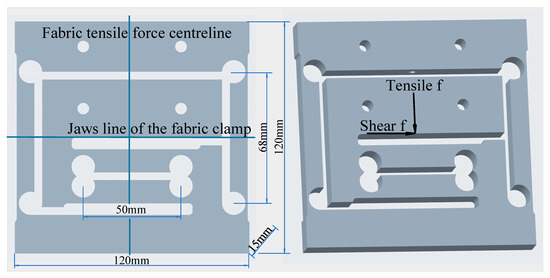 Based on the above analysis, considering the specific needs of fabric measurement, the elastic element of the fabric measurement sensor is designed as shown in Figure 9. In Figure 9, the structure of the tensile measurement sensor elastic element is designed as an S-shaped sensor, nested in the middle of the elastic element of the shear measurement sensor. When the sensor is in a zero-force state, the intersection of the jaw line of the fabric clamp and the centre line of the fabric tensile force coincides with the planar geometric centre of the sensor elastic element. The shear sensor elastic element is also optimised to an S-type equivalent sensor. The elastic element structural arrangement considers the following aspects: