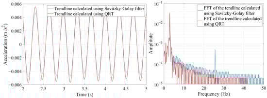 Many software applications such as “Signal Analyzer Toolbox in MATLAB R2021b” are available to calculate the above formula and determine the acceleration’s trendline. Figure 2 compares the trendlines calculated using the Savitzky–Golay filter and QRT.