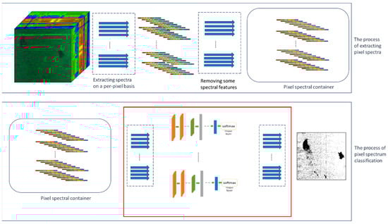 - The extraction of pixel spectra from hyperspectral images and feature selection to construct pixel spectral samples.