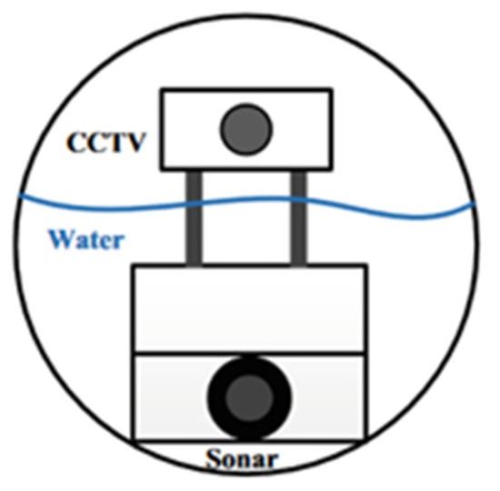 CCTV technology is commonly used for monitoring drainage pipelines. It involves real-time video recording and computer analysis of the pipeline’s condition and transportation status based on the captured images []. This type of monitoring technology offers better economy and safety compared to relying solely on manual monitoring of pipelines, but it also has certain limitations. When CCTV monitors pipelines, it can only provide information above the liquid flow line inside the pipeline and cannot achieve quantitative analysis of defects such as pipeline deformation and surface damage []. In order to address the limitations of traditional visual-monitoring technology, researchers have turned to computer analysis of pipeline visual-monitoring results to achieve both qualitative and quantitative evaluation of pipeline defects []. In addition, the limitations of this technology in pipeline monitoring can be overcome by integrating it with other pipeline-monitoring technologies. For example, if CCTV is used to monitor pipelines with high water levels, which cannot effectively capture underwater conditions, sonar technology can be used as a supplement to scan the pipelines, compensating for the limitations of CCTV pipeline-monitoring technology []. The specific combination method is shown in Figure 1.