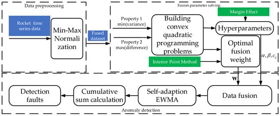 As shown in Figure 4, the detection algorithm flow includes several parts, including data preprocessing, fusion parameter solving, and data stream anomaly detection, and the following parts will be introduced separately next.
