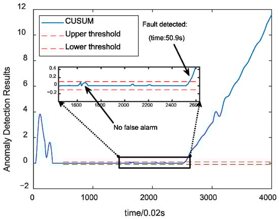 As for the missed detection, this paper uses the detection time as an indicator, which can indirectly reflect the missed detection of the algorithm. The reason that part of the faults is not detected is that, in order to balance the false alarms and missed detection, the threshold design of the adaptive CUSUM algorithm in this paper is more conservative, which leads to the increase in the detection time.