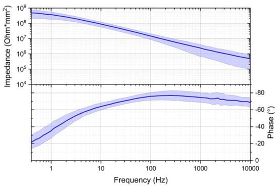 Impedance and phase shift of the SoftPulseTM soft dry electrodes coated with silver–silver chloride-based coating.