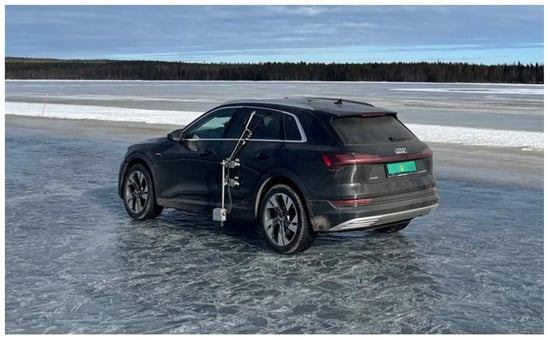 The case study Audi e-tron at the Ebbenjarka testing facility (Sweden), including the Kistler Correvit S-350 sensor, providing accurate measurements of the velocity components.