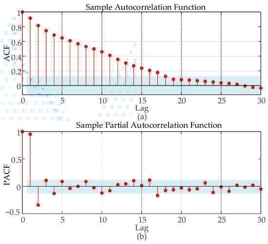 ACF and PACF diagrams of wind power. (a) Wind power autocorrelation diagram; (b) Wind power partial autocorrelation.