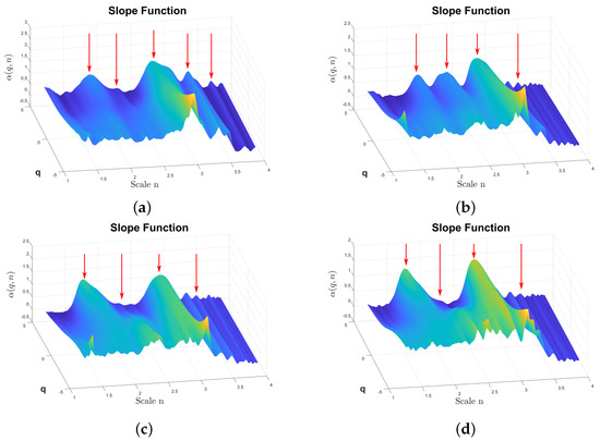 - Step 6: The time series multi-fractal spectrum can also be calculated as [47]:where .