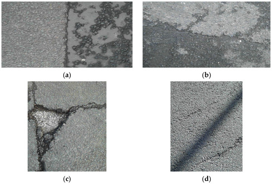 Multi-type crack classification is often performed using deep learning methods like convolutional neural networks (CNNs). In many cases, the process starts with pretrained models such as VGG-16, Inception-v3, Xception, and VGG-19/Resnet152. In addition, DarkNet-53, which belongs to the DarkNet series, is used as the backbone network in the YOLOv3 family, which has been applied to detect pavement cracks with high accuracy [16,17]. Despite the fact that deep learning is more computationally expensive than other methods, an accuracy of above 90% can be achieved after data augmentation and fine tuning. Zou et al. (2018) designed an encoder–decoder style deep convolutional neural network (DCNN) on hierarchical multi-scale input features with a test set F-score of roughly 0.87 [18]. A DCNN fusion model combining the advantages of the U-Net model and the multitarget single shot multibox detector (SSD) CNN model is proposed by Feng, X et al., where classification is performed after segmentation. The detection accuracy of the system is above 85%, though a relatively larger number of parameters are handled [19]. Chen et al. (2022) defined the characteristics of each frame as Local Binary Patterns (LBP) and Principal Component Analysis (PCA) in the filmed video and then classified the damage to the road pavement through a Support Vector Machine (SVM) [20]. Ibragimov (2022) conducted a study on detecting distress in the pavement through convolutional neural networks, and Jiang et al. (2022) detected and segmented cracks in road pavements through a two-step deep learning approach [21,22]. Chandra et al. (2022) studied the seasonal effect to detect complex pavement defects and Chen et al. (2022) used thermal images to detect pavement damages [23,24]. Recently, studies on locating damage such as potholes through 3D data are also being conducted [25].