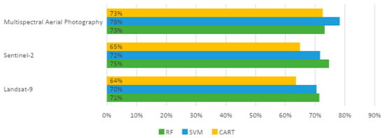 The following supporting information can be downloaded at: https://www.mdpi.com/article/10.3390/s24020466/s1, Figure S1: Classification results of three different Machine Learning Algorithms over three types of imagery; Table S1: Confusion Matrix.
