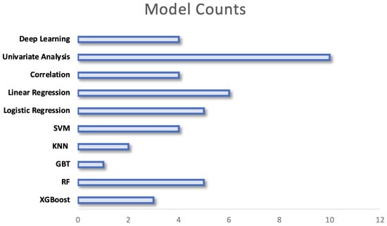 Although uncommon, some researchers did utilise the raw accelerometer data from the devices. Three studies utilised raw accelerometer data to stratify the signals into different intensities of activity [64,72,91]. This allows researchers to quantify the intensity of movement and compare time spent in sedentary behaviour against higher intensities including MVPA. Figure 3b presents a breakdown of the location at which sensors were worn. The majority of all sensor devices, and therefore accelerometer sensors, were worn on the wrist in commercial devices (Fitbit/Garmin) [71,76,80,86]. However, many of the research papers that only included an accelerometer sensor were worn on the participant’s hip, see Figure 3b [64,77,78,79].