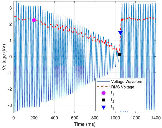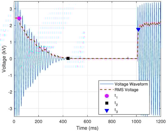 where x is the analog signal, is the size of the RMS window, and is the RMS calculation of the analog signal [16]. Unless otherwise stated, we set the size of the RMS window to the nominal number of samples in each cycle, .