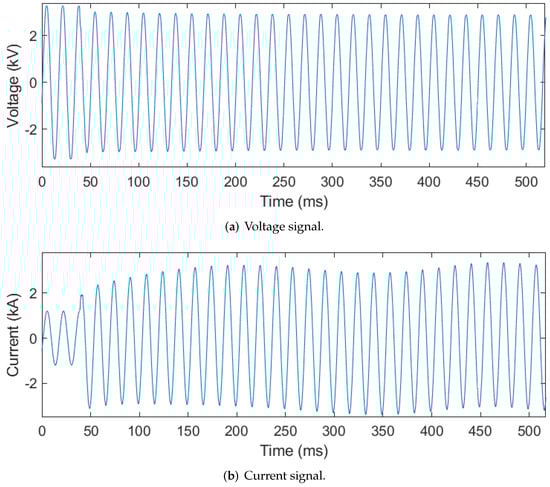 Generally, PQ event records capture several voltage or current signal cycles before a disturbance begins. The DFRs recording the data used in this work are typically set to record fifteen cycles before a disturbance. The nominal peak values of voltage and current signals are determined using these “pre-event” cycles for each processed signal. For this work, the first cycle in the event record was used to determine these nominal scalar values, denoted as (i) for nominal peak voltage, (ii) for nominal peak current, (iii) for nominal Root Mean Square (RMS) voltage, and (iv) for nominal RMS current. The magnitudes of the voltage and current signals are compared to these nominal values in order to normalize the data to the power system’s particular voltage or current level, allowing for more flexibility when using these tools at different scales within the system.