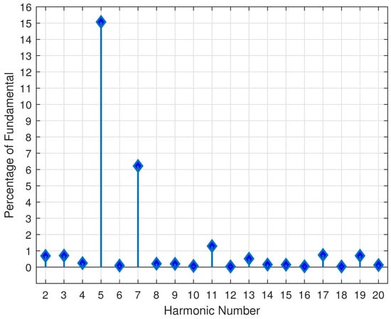 Finally, the harmonic ratios of the entire current waveform are calculated using Equation (5), as described in Section 2.1.4. An excellent indicator of CT saturation is when the second and third harmonic currents respectively exceed the thresholds of 15% and 5% of the fundamental.