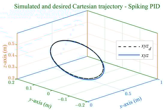 Simulated and desired Cartesian trajectory using spiking PID controller.