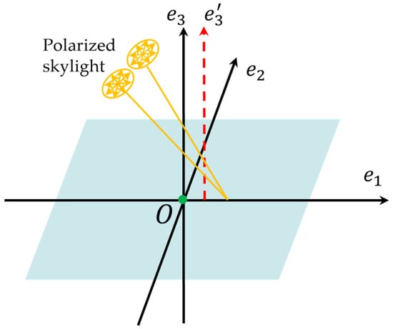 Polarization is another dimension of light, just like spectrum and intensity, which can provide distinct and useful information about a visual scene [1] and is applied in many scenarios, such as microscopy imaging [2], optical precision measurement [3,4], and biological polarization navigation [5,6,7]. Many animals, particularly insects, are sensitive to the polarization of light and use this information for navigation, detection, and communication [8]. A great deal of research has been carried out on the behavioral neurobiology of polarization navigation in insects [9,10,11,12,13]. The desert ant has to rely heavily on polarized skylight and path integration in its featureless desert habitat during foraging [14]. Biologists have recently demonstrated that greater mouse-eared bats use skylight polarization cues to calibrate a magnetic compass at sunset [15] and mantis shrimp use celestial polarization and path integration to navigate home [16]. This celestial polarization orientation method is used as a bio-inspired polarization navigation method which has attracted much attention due to its advantages, namely autonomy and no error accumulation [17,18]. This method is reported to have potential applications in assisting inertial navigation in the event of satellite denial [19]. However, the factors that affect the measurement performance of bio-inspired polarization navigation sensor (BPNS) remain unclear. The study of the measurement error model of BPNS is of great significance to promote the practical application of polarization navigation.