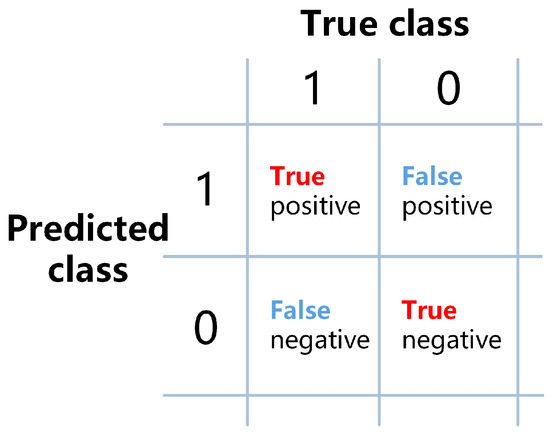 TP, FP, TN, and FN represent the number of samples that are true positives (correctly predicted positive), false positives (incorrectly predicted positive), true negatives (correctly predicted negative), and false negatives (incorrectly predicted negative), respectively. The relationships between these metrics are shown in Figure 5.