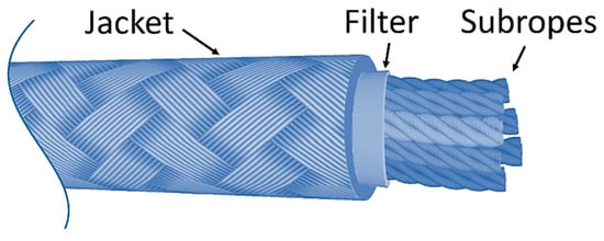 Usually, mooring lines are monitored through visual inspections using Remote Operated Vehicles (ROVs). Although this approach may be suitable for monitoring chains or steel wires, it is not for synthetic mooring lines. This is because the complex composition of synthetic ropes and their jacket, if present, hinders potential damage in the internal strands [13] (see Figure 1). Furthermore, biofouling and murky water might also obstruct reliable visual inspection. Therefore, alternative methods of monitoring must be employed.