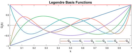 The FP model structure identification based on the baseline dataset involves the and orders determination, as well as the selection of the appropriate basis function type and dimensionality [43,44]. To simplify the identification problem, the decision was made to employ the same orders as those used for the corresponding VAR and TF-ARX models. For the basis functions, Legendre polynomials of one variable were employed, where each function corresponds to a distinct polynomial order, see Figure 15. The number and combination of Legendre polynomial orders were determined by minimizing the BIC criterion tested for different combinations. The resulting structures for the FP-VAR and FP-TF-ARX models are presented in Table 3.