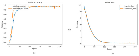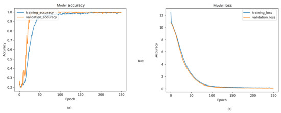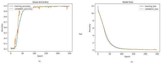 Proposed model training history from cloth aerodynamics: (a) Model accuracy; (b) model loss.