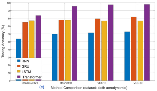 Classification accuracy comparison with RNN, GRU, LSTM, and Transformer models (cloth aerodynamic).